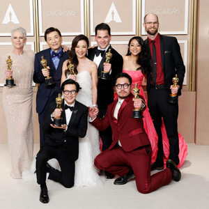 《瞬息全宇宙》获第95届奥斯卡最佳影片众主创登台庆祝。图/ic