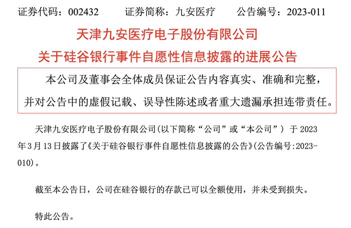 美国财政部、美联储和FDIC联合发表声明后,由硅谷银行破产拉响的警报已基本解除。3月14日,久安医疗发布公告称,截至公告日,公司在硅谷银行的存款已可以全额使用,并未受到损失。