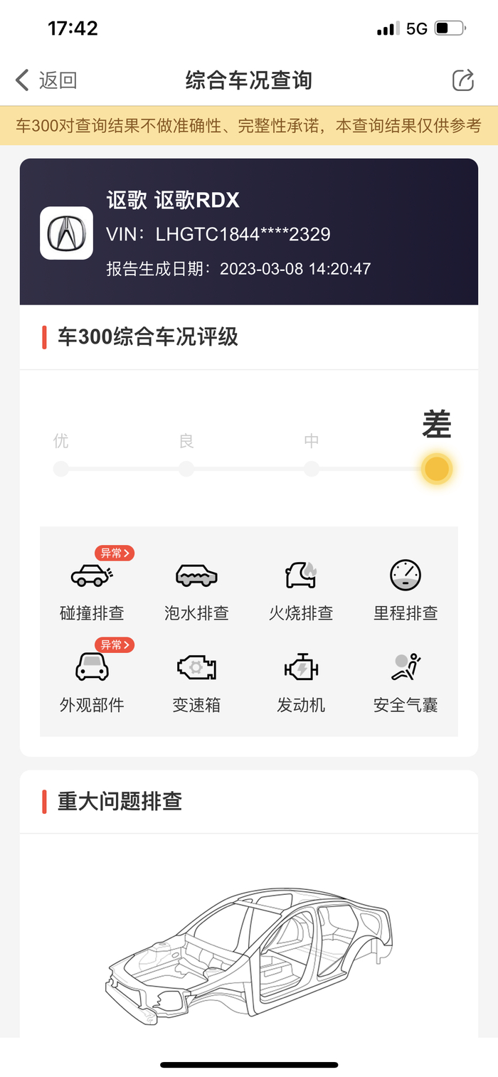 杨先生所拍车辆的综合车况评级为“差”。