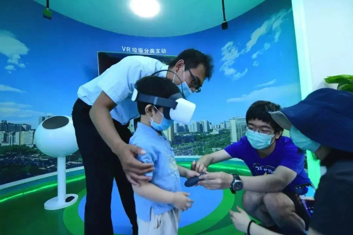 垃圾分类科普微展厅位于生态岛西侧,包含3D沉浸式体验厅和直播厅。戴上裸眼3D设备,用高科技学些环保知识;在直播厅里,利用网络传播平台开设直播栏目,对公众进行环境文化宣传推广;以垃圾分类为主题的全流程宣传壁画引领参观群众从头到尾了解生活垃圾的处理过程。在这里,人们不仅可以了解生态文明发展的历史,还可以走进垃圾降解的时空走廊,了解不同垃圾的降解时间。此外,展厅房顶还安装了太阳能光伏电站,使展厅更加节能环保。