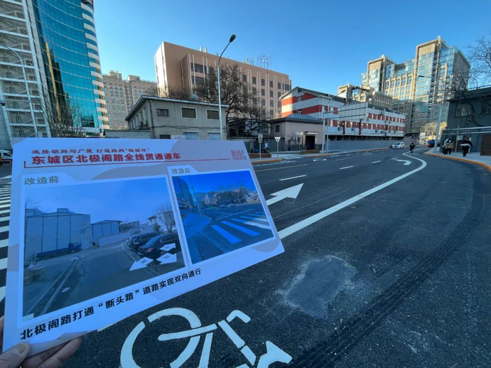 北极阁路是连接北京国际饭店路口与东单双方向的重要联络线。去年,北极阁路全线通车,有效分流了周边主干道的车流量,居民不必再绕行。