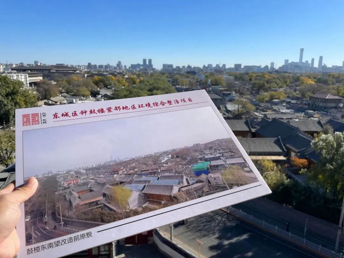 钟鼓楼是北京中轴线上的北起点,为了提升中轴线环境风貌品质,加强中轴线保护,东城区开展钟鼓楼紧邻地区环境综合整治提升项目。该项目将钟鼓楼周边安定门街道、交道口街道区域内的16.59公顷面积纳入改造提升范围,以修缮第五立面、提升公共空间环境、优化市政设施和恢复街巷建筑立面作为改造重点。
