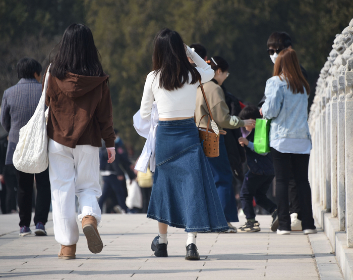 3月4日,北京,气温持续转暖,游客纷纷穿着较薄的春装游览颐和园。图/视觉中国