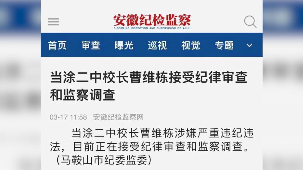 据安徽纪检监察网3月17日通报,当涂二中校长曹维栋涉嫌严重违纪违法,目前正在接受纪律审查和监察调查。此前,该校采购项目中存在单价3600元的插线板。