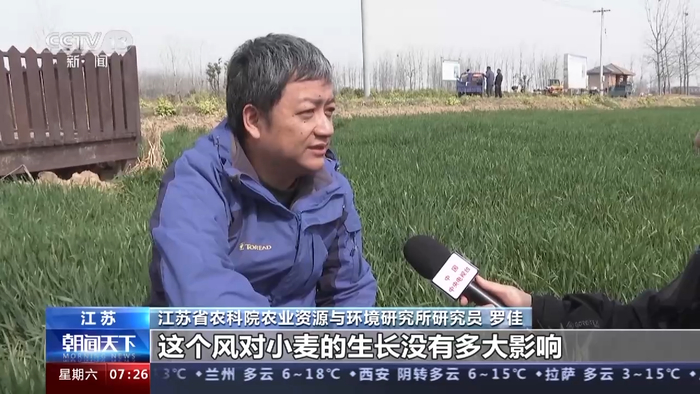 江苏省农科院农业资源与环境研究所研究员 罗佳:这个风对小麦的生长没有多大影响,但是对于拔节期的小麦施肥跟打药还是有一定的影响的,这个时期不宜进行施肥、打药。