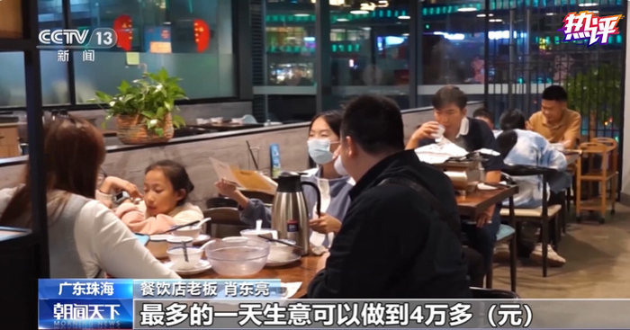 “订单量大概比平时增长了三倍多。最多的一天营业额可以做到4万多元,生意好了,我们信心更足了。”珠海一位餐饮店老板的信心,来自每天店里的忙碌场景。