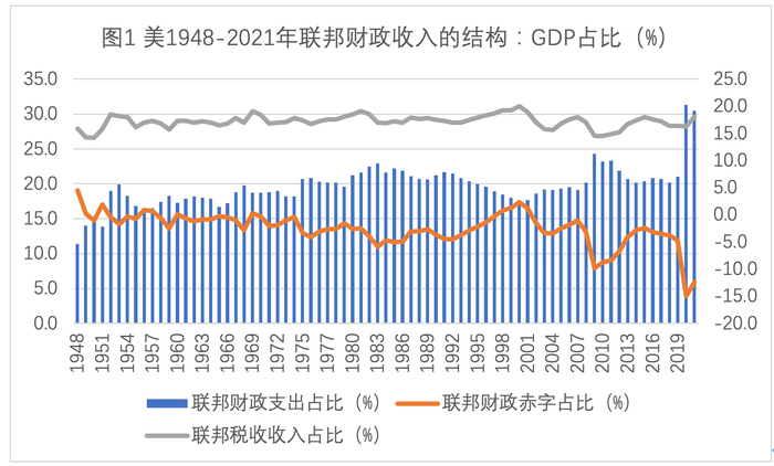 二是维持美式霸权的财政赤字和债务饥渴症推高了联邦财政低成本融资预期。从1985年开始,美全面进入了国际贸易赤字阶段,贸易赤字额逐年加大,而美元、美债、大宗商品国际循环通畅,加上低利率因素,使得在国际市场上融资成本极其低廉,甚至联邦政府长期享受负利率融资的好处,推动联邦财政赤字加速上升,形成债务沉淀。回首1981年,联邦财政债务总额仅为9948.28亿美元,以联邦债务占GDP之比衡量的债务率为31.8%。随着美国经济、财政形势恶化,债务总额和债务率两大指标加速、持续攀升;在美国经济“大衰退”顶点的2009年,分别达到11.88万亿美元和82.1%;到了2019年末疫情前,分别达到22.67万亿美元和107.2%。白宫预算与管理办公室(OMB)预计,2023年联邦债务总额和债务率将分别突破32.59万亿美元和127.5%。财政赤字和债务指标急升都对美财政体制和税收产生巨大压力。