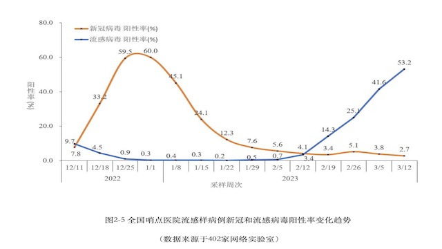 中国疾控最新发布的全国新型冠状病毒感染疫情情况显示,2023年第10周(3月6日-12日),全国哨点医院流感样病例流感阳性率已达到53.2%,这是连续第七周该数字处于攀升状态。本次流感流行,以甲流为主。而本轮甲流流行拐点是否到来了?