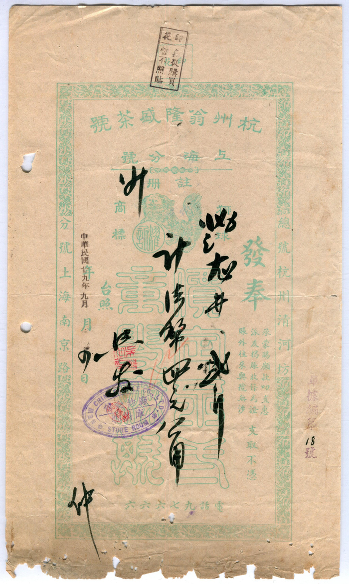 作者自藏 翁隆盛·发奉(带狮球商标)