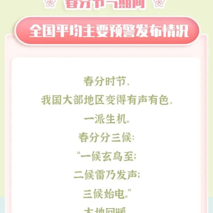 3月21日,我国各地迎来春天的第四个节气——春分。春分时节,我国大部地区进入一年中升温最快的一段时间,春天的脚步迅速北扩,春色渐浓,燕子北飞,春花烂漫。