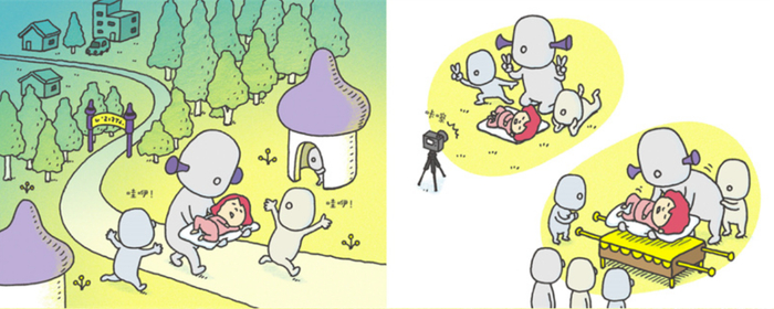 这本书的创作灵感正是来自生活。吉竹伸介曾说:我的两个孩子早上醒来头发都特别乱,而且乱得很有趣。所以我每天一边想着“今天大家的头发会变成什么样呢”,一边充满期待地起床。