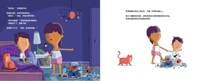 这是一个孩子和父母身份调换,整夜无法好好睡觉的故事。芬恩睡不了一个完整的觉,不是妈妈来找他要水喝,就是爸爸做了噩梦要抱抱,好不容易把他们都哄好躺下了,爸爸又要挠背,妈妈把水洒在床上了……成为了照顾者的小男孩深吸一口气,心想:“妈妈不会永远四十岁。我得珍惜这宝贵的时光。”