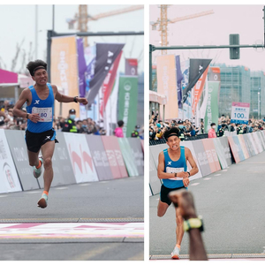 冲过终点的那一刻,何杰的内心还算平静,他想第一时间找到教练。看到在终点附近等待的肖丽,何杰先是单膝跪地,随后和教练紧紧相拥。此时,何杰再也控制不住情绪,喜极而泣,口中反复说着“谢谢教练”,肖丽也非常动容,安慰弟子道,“何杰,我们成功了。”