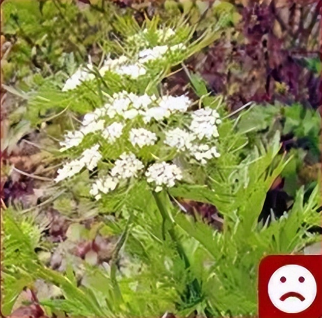 又叫蛇床子、野胡萝卜,叶和根都有剧毒。根在幼苗时为灰色,长大后成浅黄色,叶柄黄色,臭味很大。