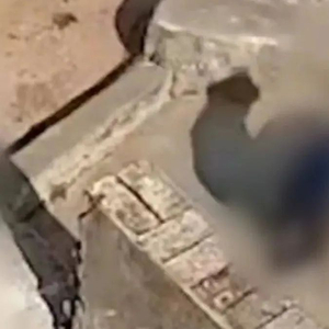▲7岁女孩将4岁男孩扔入井中。截图来自视频