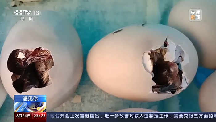 韩战桥:当孵化出来特别激动,特别激动!那时候看到有一个小洞,它里边都开始动,喙它开始啄壳。