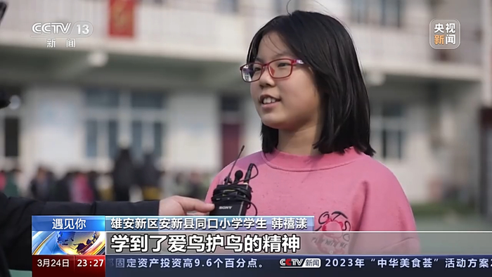 雄安新区安新县同口小学学生 韩禧漾:大家学到了鸟的习性、外貌,还有它是几级保护动物,最主要的是我们从老师身上学到了爱鸟护鸟的精神。