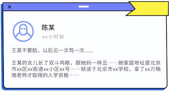 陈某在其社交平台账号中发布关于王某及王某女儿的侮辱性内容,同时还在另一社交平台发布一张王某全家福照片,并将其设置为个人主页背景图。而后陈某仍觉得不过瘾,还给王某和王某女儿发了数百条短信进行辱骂。