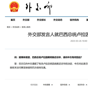 [#外交部回应卢拉因病推迟访华#:表示理解和尊重]问:据媒体报道,巴西总统卢拉因病将推迟访华,请问中方有何回应?#中方向卢拉总统表示慰问#