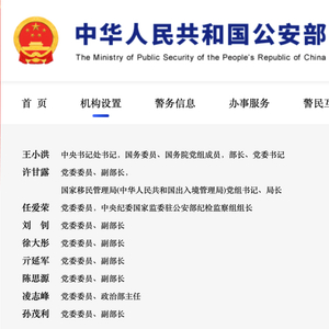 据公安部官网“机构设置”栏目显示,徐大彤已经出任公安部党委委员、副部长。凌志峰已经出任公安部党委委员、政治部主任。