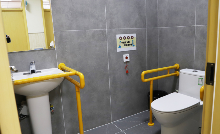 现场:病房进行了适老化改造、添置无障碍基础设施,并购买了全胸震荡排痰机、电动移位机及整套沐浴设备。