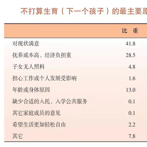 不打算生育(下一个孩子)的最主要原因 本文图源:上海统计局