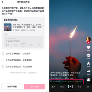 目前,抖音正在积极开发“发布前打标”声明等功能,未来创作者可以在发布页面一键勾选,对作品进行打标。