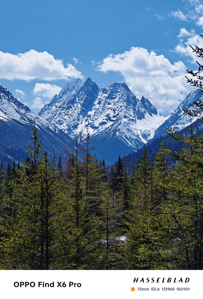 以前带手机外出拍美景,往往只限于使用广角和超广镜头,但是这次我在四姑娘山专门使用Find X6 Pro的长焦镜头来拍摄,我个人对这颗镜头的素质还是很有信心的,毕竟用的是一颗IMX890大底传感器,还有5000W高像素和马里亚纳X自研芯片加持,或许真的能带来以往不亚于主摄的画质表现呢。
