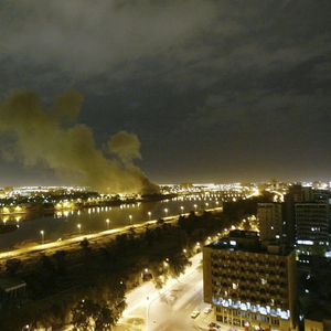 当地时间2003年3月20日,伊拉克巴格达,巴格达贸易部在美国领导的袭击中被导弹击中,浓烟从该部升起。图/IC photo