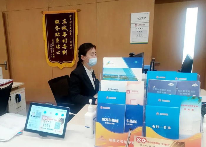 “跨省、跨区通办”窗口摆放政策宣传册。