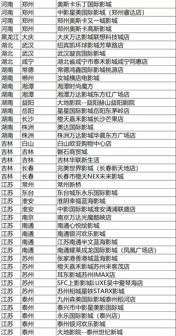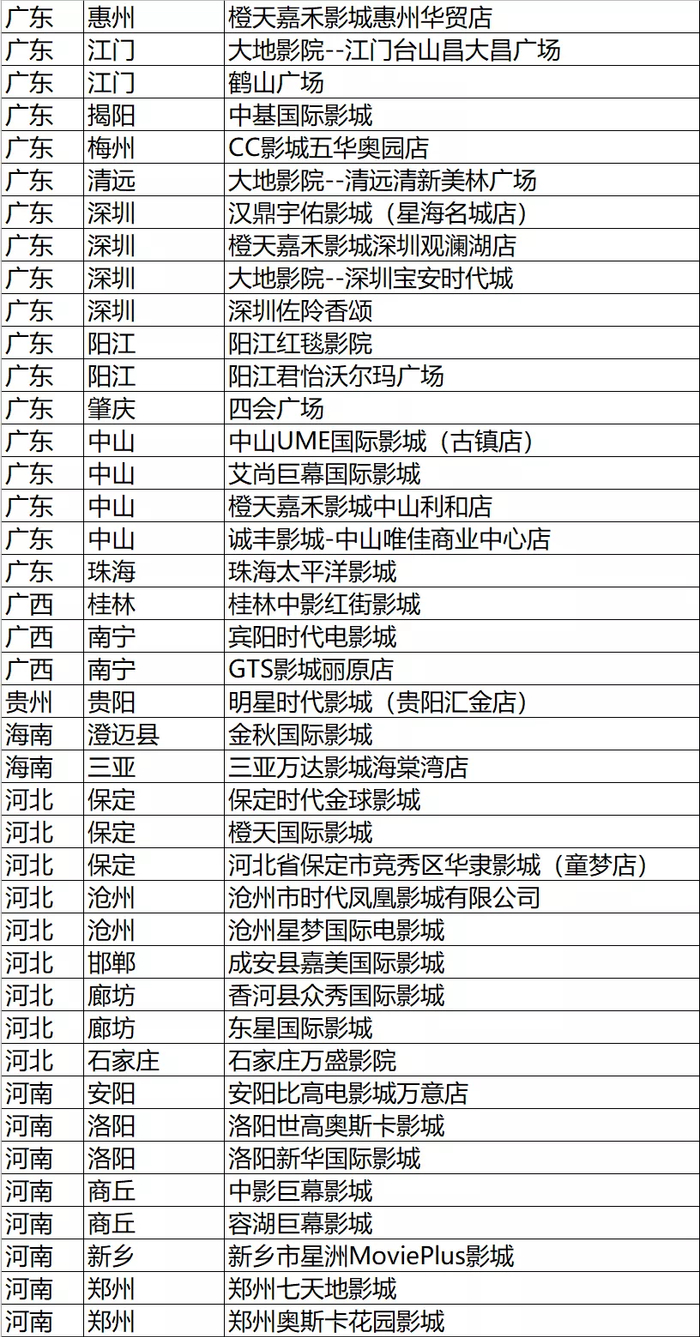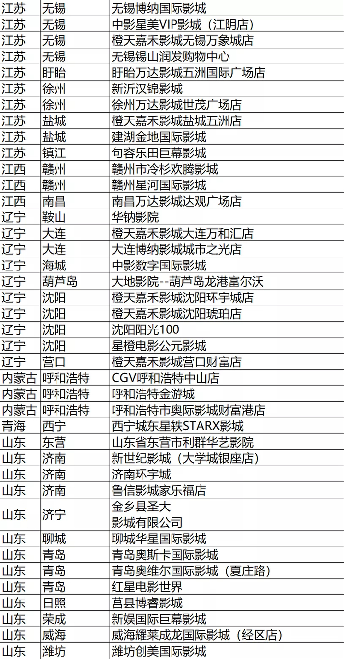 剔除影院名单如下: