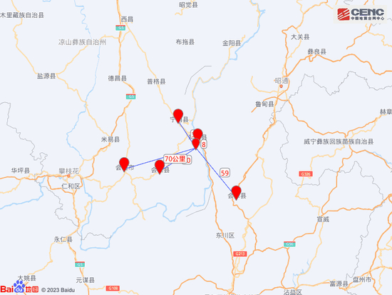 周边县城:震中距云南巧家县8公里、距宁南县31公里、距会东县40公里、距云南会泽县59公里、距会理市70公里,距云南昭通市97公里,距昆明市200公里。