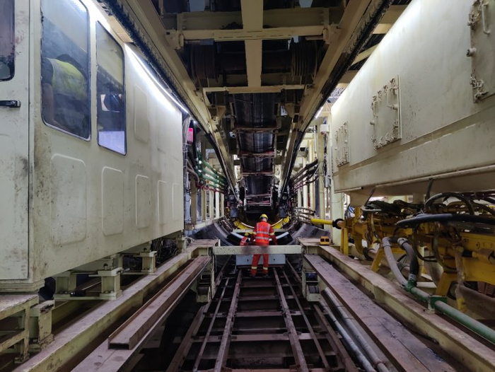 2022年12月26日,轨道交通18号线北延工程全线首台TBM“渝越1号”在渝中区大坪西站—终点区间始发,全线正式进入TBM施工阶段。本次始发的“渝越2号”为单护盾敞开式TBM,开挖直径6.8米,和已进入掘进状态的区间右线TBM“渝越1号”同洞始发,在大坪西站大里程端接收,掘进区间洞顶最大埋深95米,最小埋深32米。
