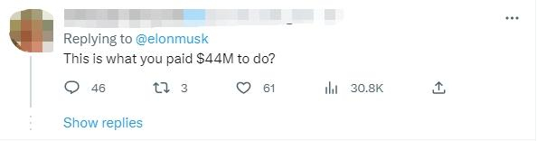 但也有网友表示不理解,发文称,“这就是你花440亿美元要干的事?”