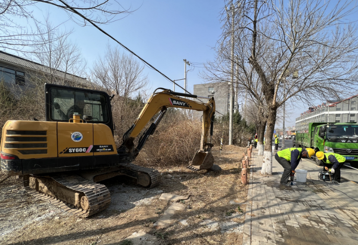 当天,开工现场一派热火朝天的景象,施工队伍如期进场,经过现场踏勘、测绘后对古城墙遗址区域开启了地面打孔、地面挖掘等工作。洒水车进行洒水降尘,并对施工周边道路、渣土车撒漏较多路段增加冲洗洗扫作业,及时清理撒漏尘土,有效减少扬尘污染。