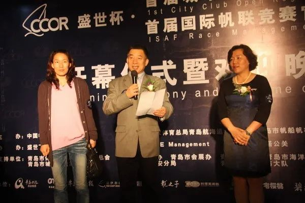 2010年6月首届城市俱乐部帆船公开赛开幕,时任国家体育总局水上运动管理中心副主任刘爱杰(中)致贺辞。(资料图)图片来源:国家体育总局网站