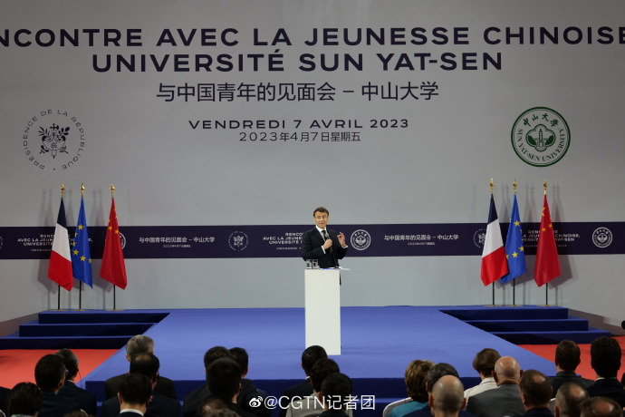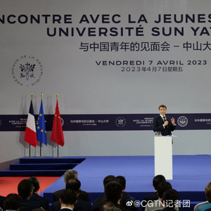 4月7日下午,法国总统马克龙抵达广州中山大学并在中山大学体育馆发表演讲。中山大学中法核学院、外国语学院等超1000名学生在现场参加交流并向马克龙提问。2010年,中山大学与法国政府合作共建中法核工程与技术学院。