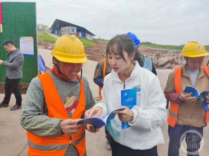 4月7日一大早,重庆市北碚区蔡家岗街道越秀渝悦江宸项目工地,几十名工友聚在一起,就自己关心的劳动关系问题咨询劳动保障监察工作人员。