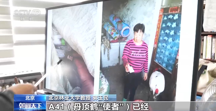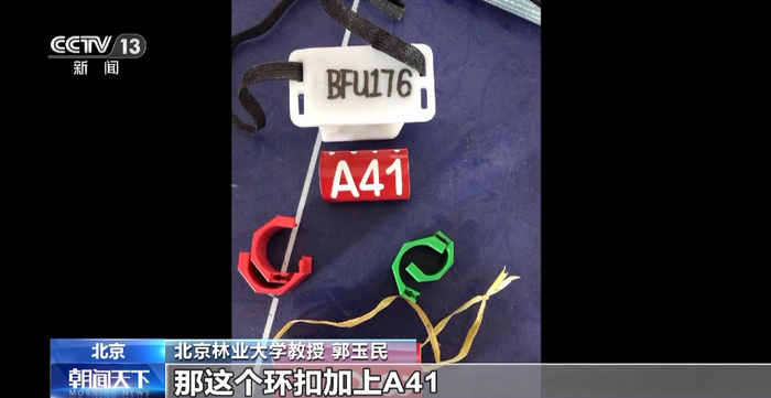 北京林业大学教授 郭玉民:这个环扣加上A41就成了它的身份证一样,同时又在它的背部放了这种跟踪器,这种跟踪器放上之后,每一个小时给我们一个点,那样我们就知道它在哪儿,它到哪儿去了。