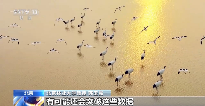 北京林业大学教授 郭玉民:这个就说明在那些地方还有我们统计不到的丹顶鹤。所以说中国丹顶鹤数量是不是局限于这些数字,还不一定,有可能还会突破这些数据。所以我们的调查的方式、调查的手段都需要进一步提升。