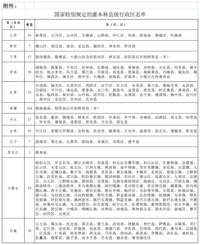 国家特别规定的灌木林,是指分布在年均降水量400毫米以下的极干旱、干旱、半干旱地区,不包括乔木分布(垂直分布)上限以上地域的灌木林。