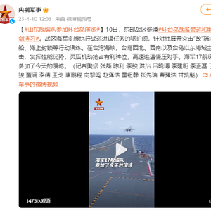 4月10日,东部战区继续环台岛战备警巡和联合利剑演习。战区海军多艘执行战巡进逼任务的驱护舰,针对性展开突击“敌”疏泊舰船、海上封锁等行动演练。在台湾海峡,台岛西北、西南以及台岛以东海域主动出击,发挥性能优势,灵活机动抢占有利阵位,高速进逼慑压对手。海军17舰编队参加了今天的演练。