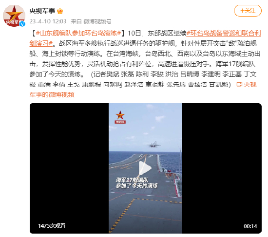 东部战区持续开展环台岛战巡进逼 构建围岛锁台态势(央视)