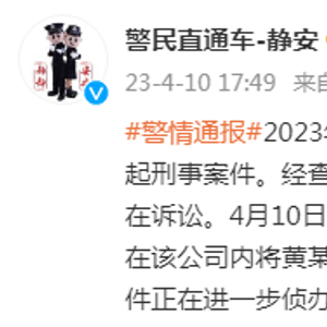 @警民直通车-静安 发布警情通报:2023年4月10日11时22分,静安公安分局接报江宁路某公司内发生一起刑事案件。经查,代某某(男,62岁)因经济纠纷与被害人黄某某(男,54岁)存在诉讼。4月10日5时许,代某某从外省居住地乘火车抵沪。11时许,代某某持刀在该公司内将黄某某捅伤,致其死亡。目前,犯罪嫌疑人代某某已被警方抓获,案件正在进一步侦办中。