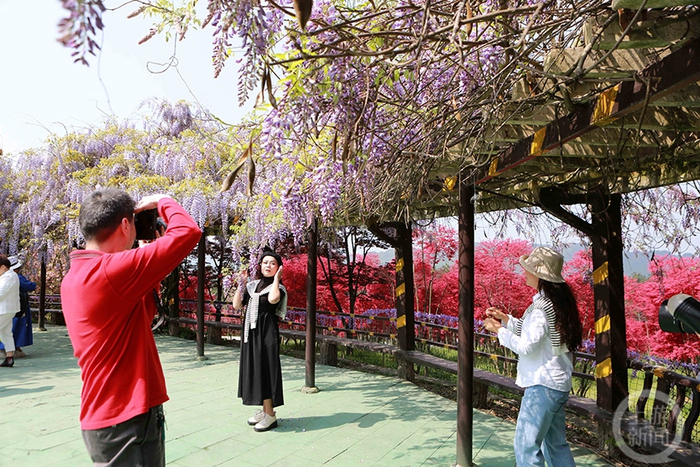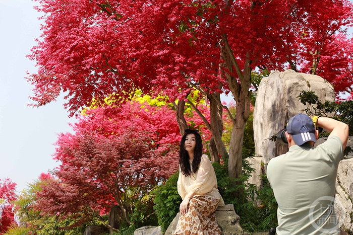同时,为了更好的点缀景区的色彩,景区也在红枫附近配套种植了紫藤花、紫荆花、樱花等品种,让整个景区不仅仅是红,更是多姿多彩。