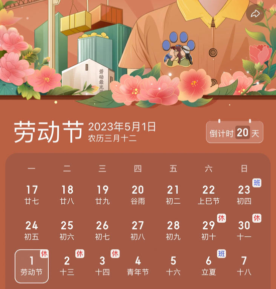 封面新闻消息,不出意外,2023年劳动节放假安排一经公布,#今年五一连休五天#的话题迅速登上热搜。不过,热搜还没挂稳就被“今年五一实际只放一天”霸占,吐嘈声也跟着而来——前后周末都要补班,连休是靠牺牲周末换来的,除去调休实际上严重“缩水”,仔细算了一笔账后发现,其实只放一天……网民调侃称“苦调休久矣”。五一假期还未到来,“调休”又被拉出来被“鞭笞”了一番。