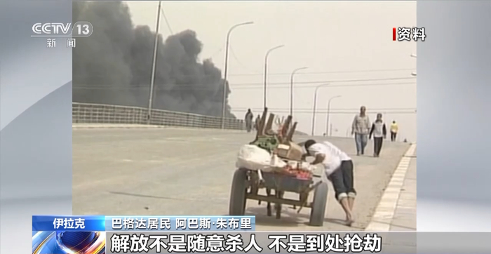 巴格达居民阿巴斯·朱布里:有人想象美军的到来是解放。但解放不是混乱,解放不是随意杀人,不是到处抢劫,不是摧毁原本运行良好的社会秩序。
