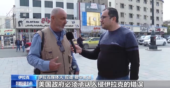 伊拉克媒体人拉德·穆罕默德:美国政府必须承认入侵伊拉克的错误,必须承认美国犯下的罪行,也要为这里发生的一切付出代价。