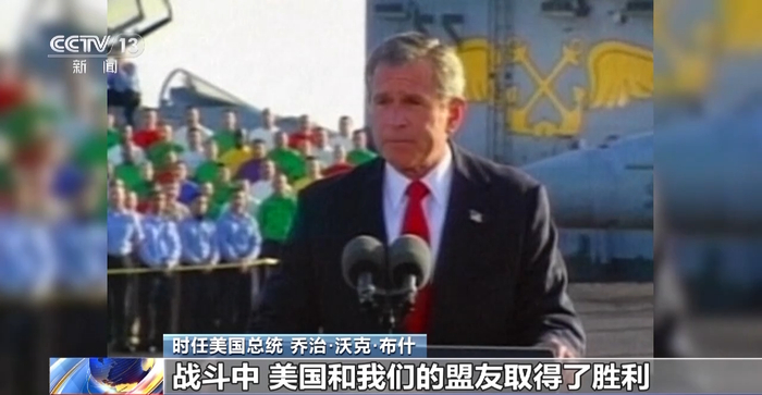 时任美国总统乔治·沃克·布什:伊拉克战争主要战事已经结束。战斗中,美国和我们的盟友取得了胜利。