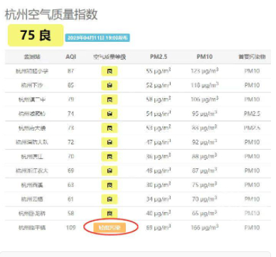 现在杭州的空气质量指数还行,但临平已出现轻度污染的状况。